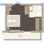 דירה זו כוללת מרפסת, שולחן עבודה ואזור ישיבה וכמו כן גם מטבח אשר ישנם בו מיקרוגל ומקרר. הדירה כוללת 6 חדרים. מקלחת בעמידה ושירותים נפרדים מוצעים בחדר האמבטיה.